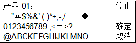 按[箭頭]鍵,將光標(biāo)對準輸入文字的位置(英文數(shù)字,假名,記號),按[確認] 鍵,則可以在[品名區(qū)域]中輸入。向左移動,向右移動按[箭頭]鍵,將對準[向左移動]或[向右移動]的位置,按[確認]鍵,則[品名區(qū)域]的文字選擇位置向左或向右移動。
